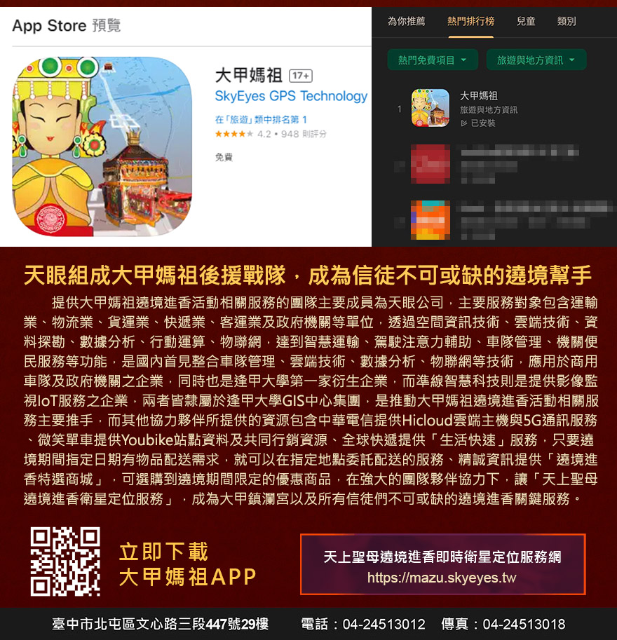 天上聖母遶境進香即時衛星定位服務網 大甲媽祖APP