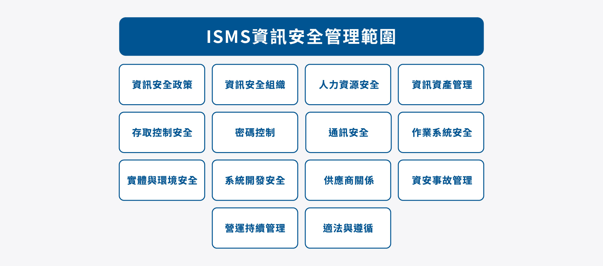 本公司於2020年開始導入ISO27001資訊安全管理系統(ISMS)國際標準驗證,此標準涵蓋14項應遵循之安全管理範圍。