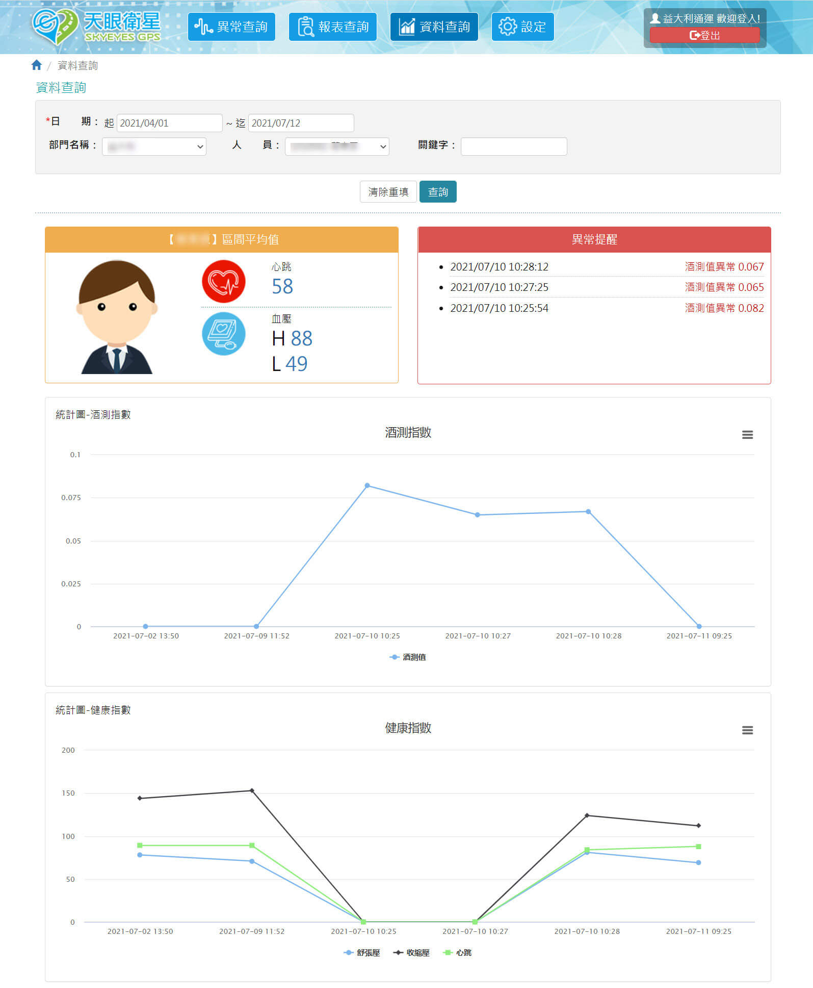 血圧およびアルコール濃度、血中酸素量の測定をドライバーに対し、出勤前に行い、血圧と血中酸素濃度の上下限を設定し、運転業務の遂行ができるかの基準となります。
